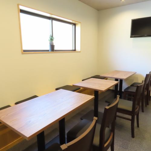 ゆったりとお食事を楽しみたい方のために、広々としたテーブル席をご用意しております。4名様掛けのテーブルが3卓、2名様掛けのテーブルが1卓あり、ご家族でのお食事や友人との集まりにも最適です。落ち着いた雰囲気の中で、美味しい料理を囲めば会話も弾みます。少人数の宴会などご希望の際はお気軽にご相談ください。